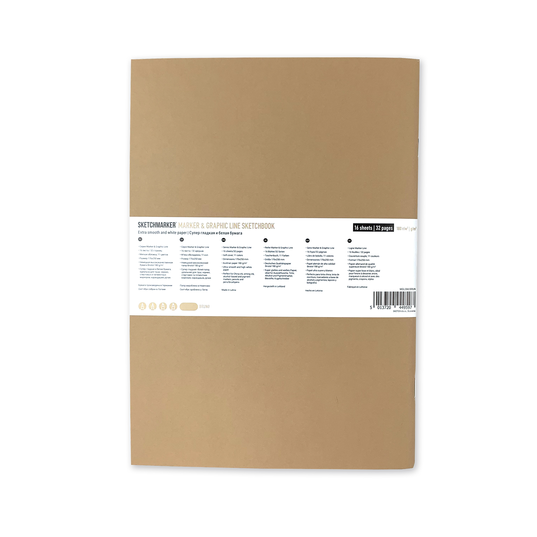 Бумага в линейке скетчбуков Sketchmarker изготовлена в Германии, и это одна из лучших бумаг Bristol, представленных на рынке. В скетчбуке можно рисовать и лайнерами, и карандашами, и тушью. Также бумага прекрасно подойдет и для графических работ.