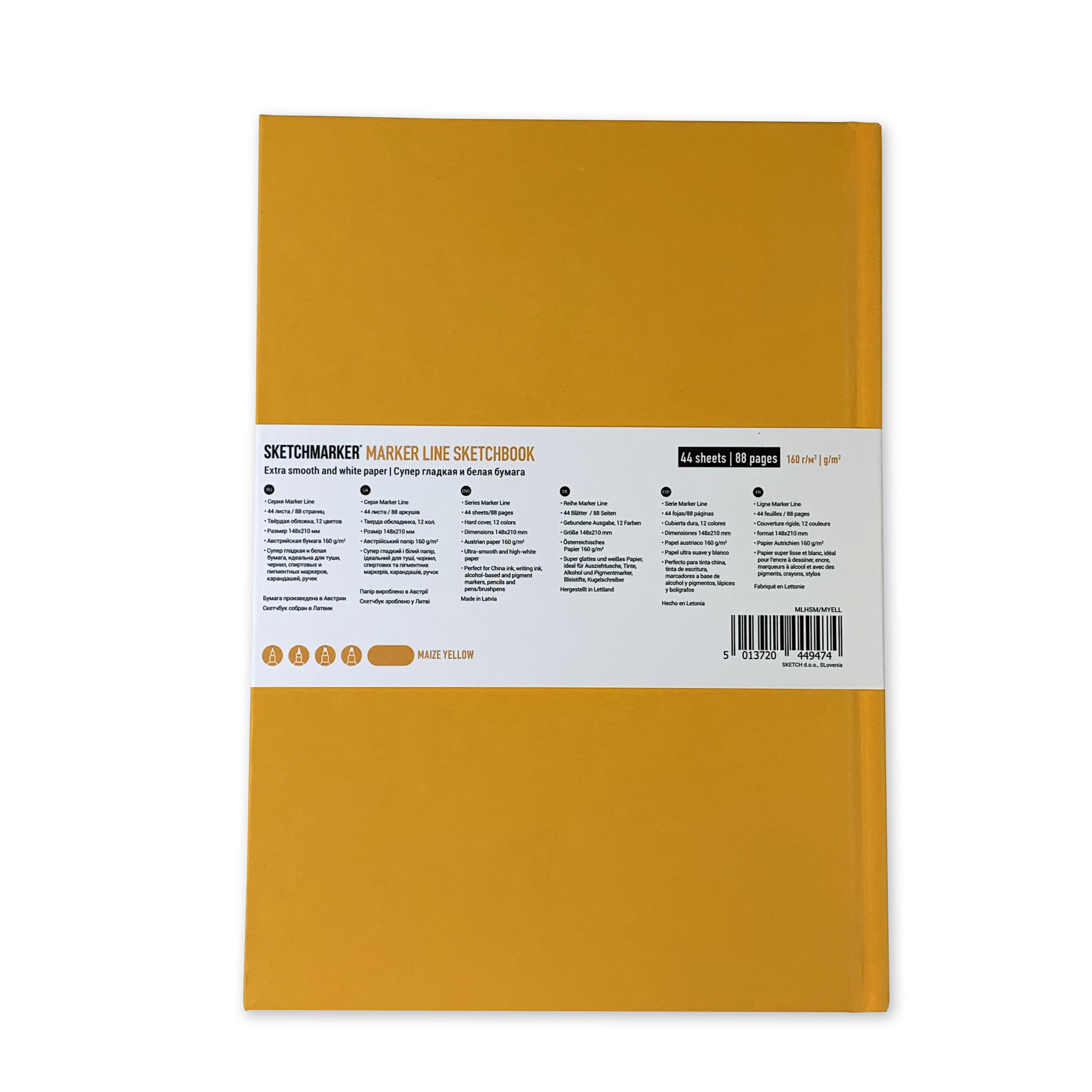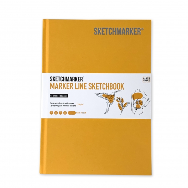 Скетчбук "Marker line" 160г/м2, A5, 44л твердая обложка, цвет бледно-желтый