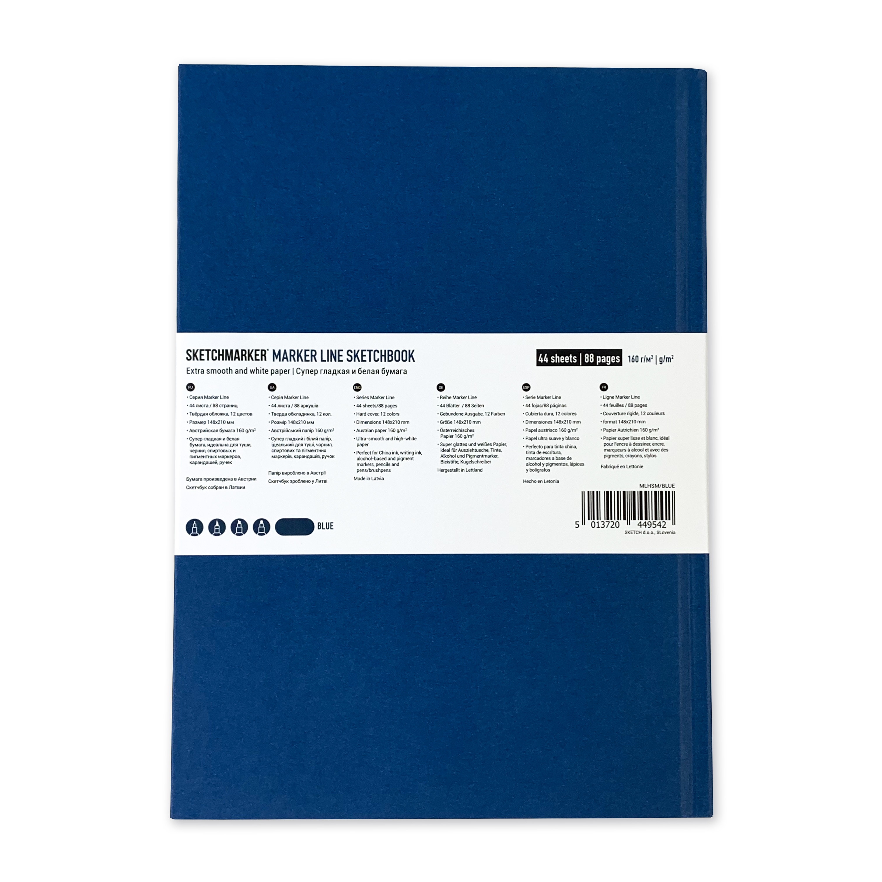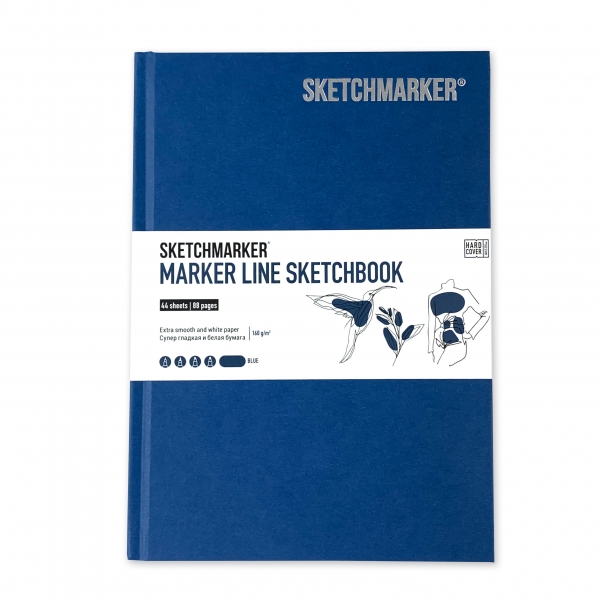 Скетчбук "Marker line" 160г/м2, A5, 44л твердая обложка, цвет синий