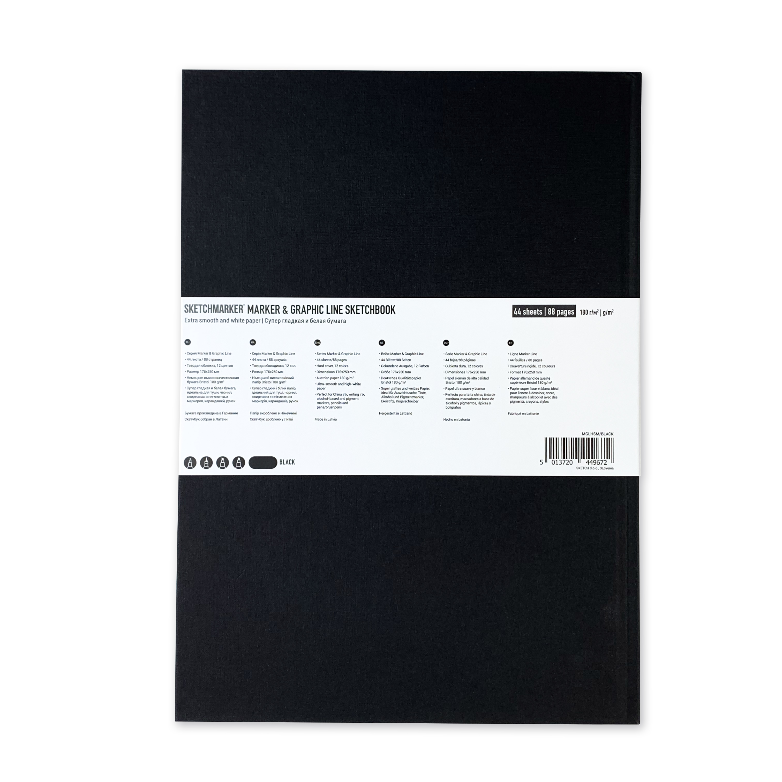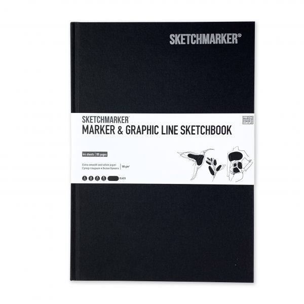 Скетчбук "Marker&Graphic line" 180г/м2, 17х25см, 44л твердая обложка, цвет черный