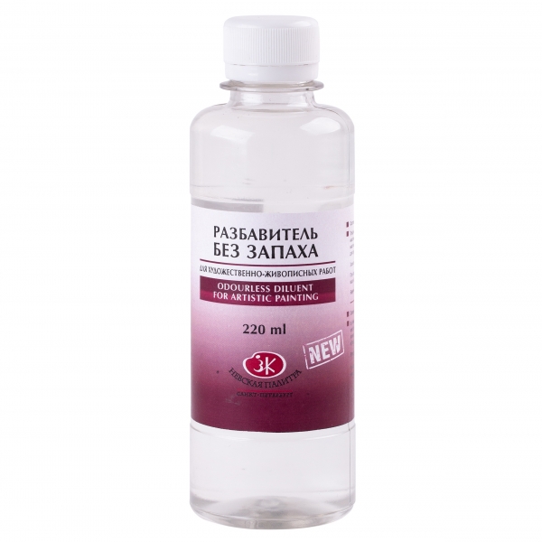 Разбавитель слабопахнущий изготовлен на основе очищенного уайт-спирита и предназначен для разведения художественных масляных красок.