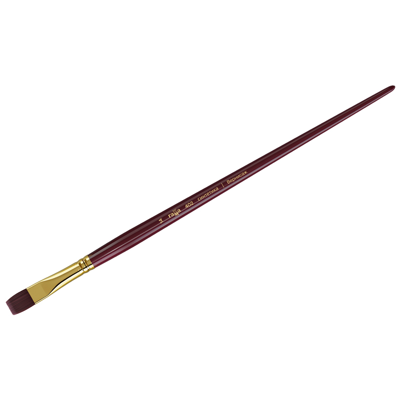 Кисть художественная "Вернисаж", синтетика бордовая, плоская, длинная ручка №14