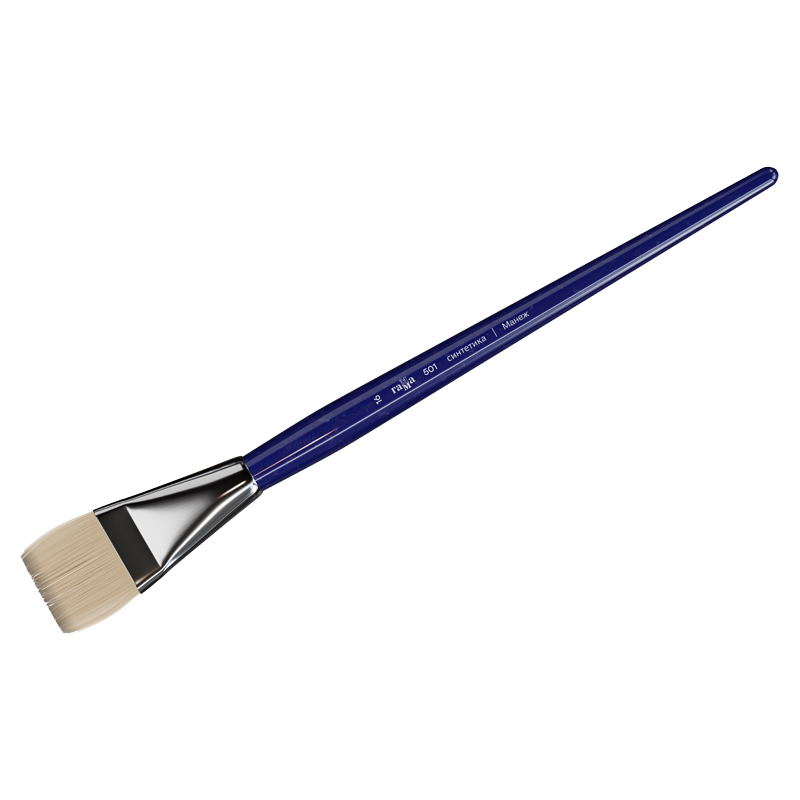 Кисти серии «Манеж» изготовлены из высококачественного синтетического волоса, имитирующего натуральный ворс щетины. Данные кисти предназначены для работы с масляными, акриловыми, гуашевыми красками, медиумами, лаками и пастами. Удобны для нанесения структурных мазков. Форма пучка круглых кистей в виде конуса с идеальным зауженным кончиком позволяет писать крупными, плотными мазками, а также вести тонкую и изящную линию. Длинная глянцевая ручка, окольцованная никелированной обоймой, дает возможность лучше контролировать работу кисти. Белый цвет волоса позволяет более точно отслеживать чистоту оттенка краски, что увеличивает качество работы с точки зрения колористики, а новый подход к технологии создания синтетики увеличил эластичность и упругость материала. Данные кисти являются полноценной заменой кистям из натуральной щетины. Длинная ручка кисти покрыта глянцевым лаком цвета ультрамарин.