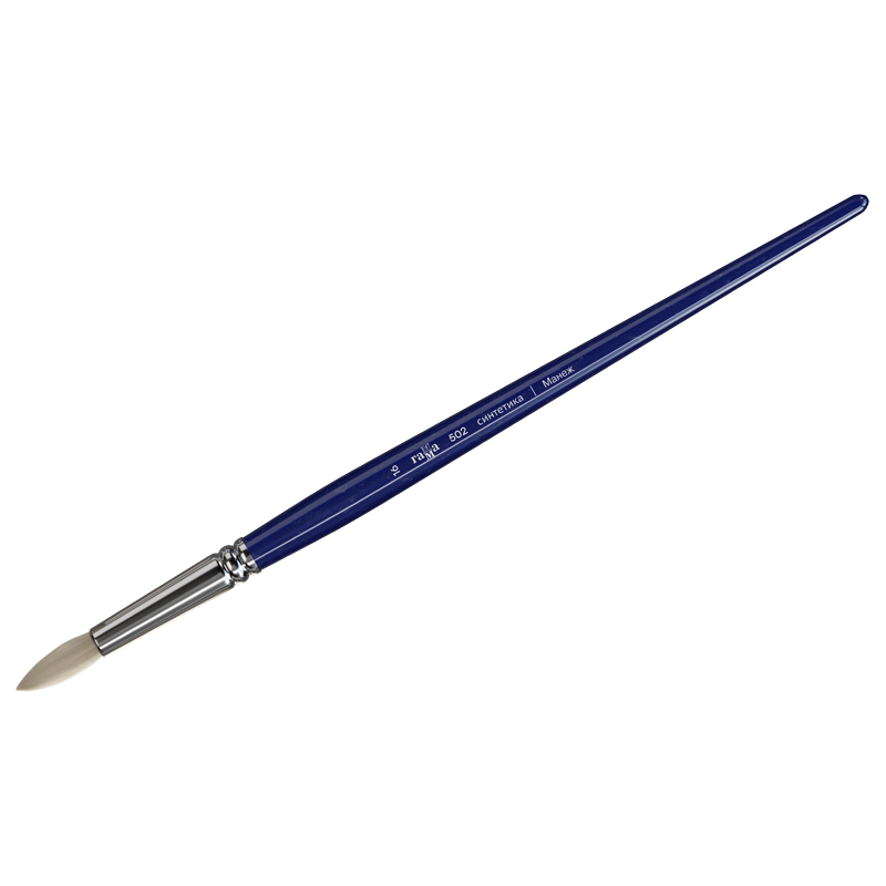 Кисти серии «Манеж» изготовлены из высококачественного синтетического волоса, имитирующего натуральный ворс щетины. Данные кисти предназначены для работы с масляными, акриловыми, гуашевыми красками, медиумами, лаками и пастами. Удобны для нанесения структурных мазков. Форма пучка круглых кистей в виде конуса с идеальным зауженным кончиком позволяет писать крупными, плотными мазками, а также вести тонкую и изящную линию. Длинная глянцевая ручка, окольцованная никелированной обоймой, дает возможность лучше контролировать работу кисти. Белый цвет волоса позволяет более точно отслеживать чистоту оттенка краски, что увеличивает качество работы с точки зрения колористики, а новый подход к технологии создания синтетики увеличил эластичность и упругость материала. Данные кисти являются полноценной заменой кистям из натуральной щетины. Длинная ручка кисти покрыта глянцевым лаком цвета ультрамарин.