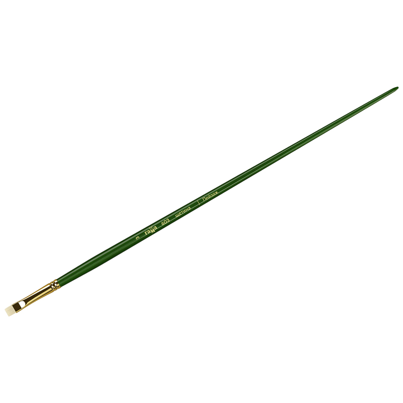 Кисти серии «Пейзаж» изготавливаются из отбеленной и очищенной специальными химическими реагентами щетины. Кисть даже после продолжительного использования не теряет свою форму. В пучке преобладают волоски с расщепленным кончиком, поэтому кисть хорошо наполняется краской и хорошо отдает краску. Упругий и прочный свиной волос отлично подходит для работы с тяжелыми масляными и акриловыми красками. Щетина износоустойчива к сильным растворителям. Длинная ручка кисти покрыта глянцевым лаком изумрудного цвета.