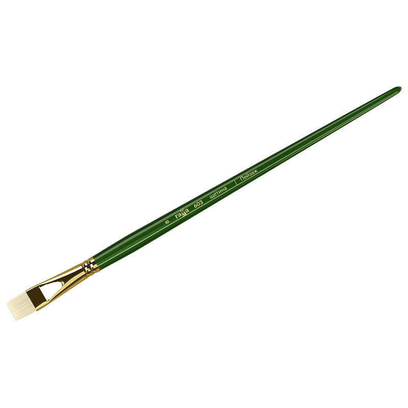 Кисти серии «Пейзаж» изготавливаются из отбеленной и очищенной специальными химическими реагентами щетины. Кисть даже после продолжительного использования не теряет свою форму. В пучке преобладают волоски с расщепленным кончиком, поэтому кисть хорошо наполняется краской и хорошо отдает краску. Упругий и прочный свиной волос отлично подходит для работы с тяжелыми масляными и акриловыми красками. Щетина износоустойчива к сильным растворителям. Длинная ручка кисти покрыта глянцевым лаком изумрудного цвета.