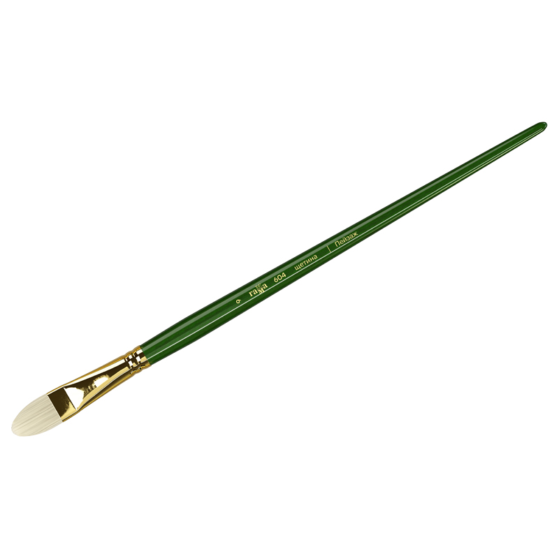 Кисти серии «Пейзаж» изготавливаются из отбеленной и очищенной специальными химическими реагентами щетины. Кисть даже после продолжительного использования не теряет свою форму. В пучке преобладают волоски с расщепленным кончиком, поэтому кисть хорошо наполняется краской и хорошо отдает краску. Упругий и прочный свиной волос отлично подходит для работы с тяжелыми масляными и акриловыми красками. Щетина износоустойчива к сильным растворителям. Длинная ручка кисти покрыта глянцевым лаком изумрудного цвета.