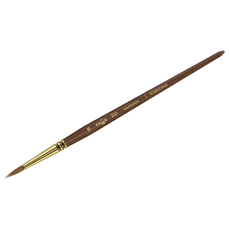 Кисти изготовлены из натурального ворса колонка. Кисть предназначена для работы с акварельными, гуашевыми и акриловыми красками. В масляной живописи колонок используют для нанесения гладких, ровных и точных мазков.Волос колонка обладает уникальными свойствами - он одновременно длинный, упругий, эластичный и прочный. Благодаря большей, чем у белки, упругости, кисть позволяет лучше контролировать мазок. Кисть вяжут из волосков разной длины, что позволяет при соприкосновении наполненной кисти с поверхностью создать капиллярный поток краски. Важно проводить своевременный и правильный уход за кистью: необходимо очищать кисти от краски до того как она засохнет, и тогда они прослужат долгое время. Деревянная ручка из древесины березы покрыта матовым лаком.