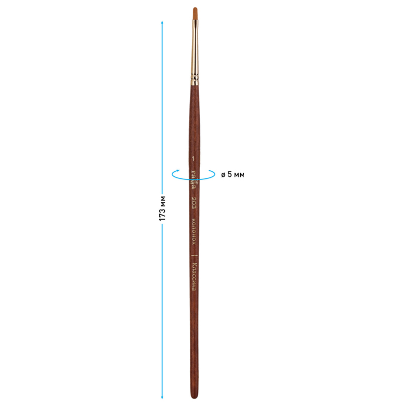 Кисти изготовлены из натурального ворса колонка. Кисть предназначена для работы с акварельными, гуашевыми и акриловыми красками. В масляной живописи колонок используют для нанесения гладких, ровных и точных мазков.Волос колонка обладает уникальными свойствами - он одновременно длинный, упругий, эластичный и прочный. Благодаря большей, чем у белки, упругости, кисть позволяет лучше контролировать мазок. Кисть вяжут из волосков разной длины, что позволяет при соприкосновении наполненной кисти с поверхностью создать капиллярный поток краски. Важно проводить своевременный и правильный уход за кистью: необходимо очищать кисти от краски до того как она засохнет, и тогда они прослужат долгое время. Деревянная ручка из древесины березы покрыта матовым лаком.