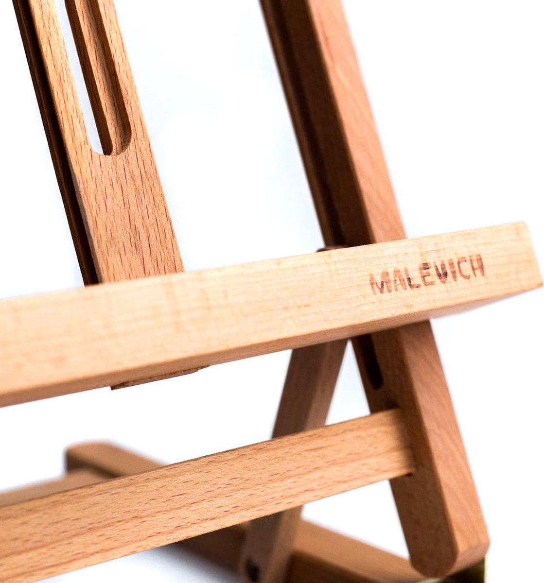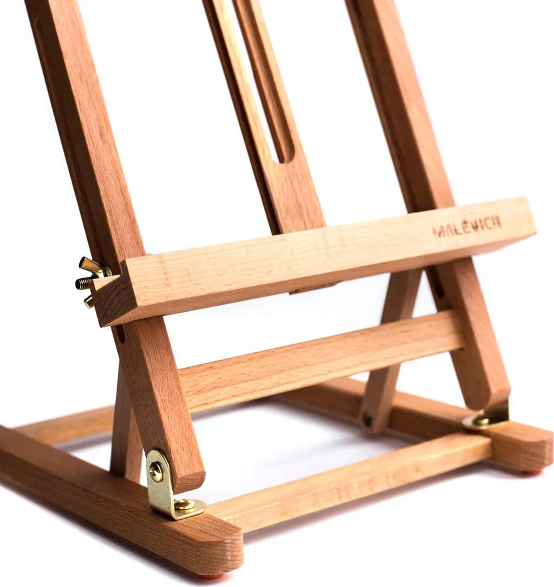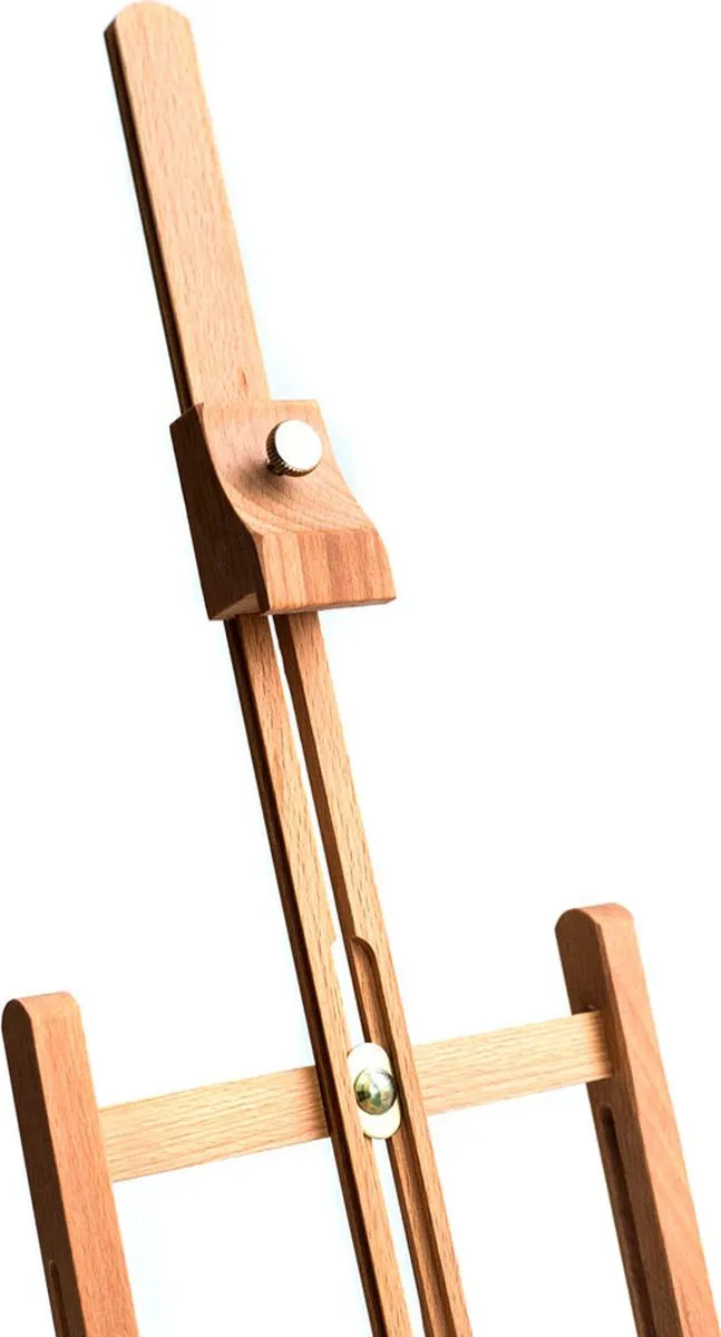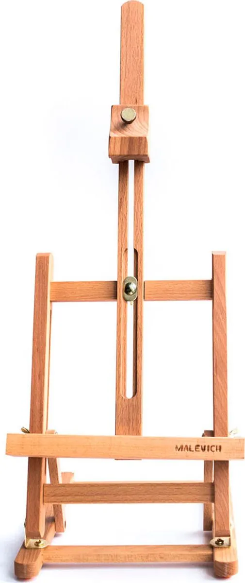 Миниатюрный настольный мольберт предназначен для работы не небольших форматах. Нижняя полка и верхний бегунок регулируются по высоте. Наклон холста также можно изменять.