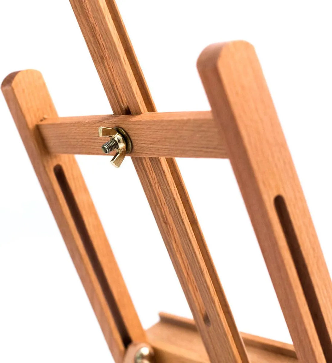 Перед началом работы с мольбертом открутите штангу для холста от перекладины. Переверните ее так, чтобы полка оказалась спереди и прикрутите обратно.