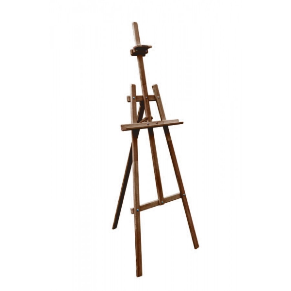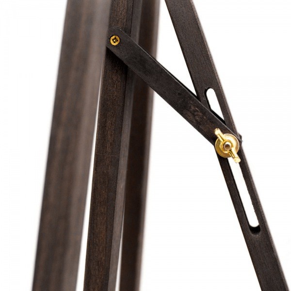 Мольберт Лира классической конструкции из натурального дерева. Угол наклона опорной ноги можно изменять, высота полки и фиксатора холста также регулируется. Бюджетный и практичный вариант мольберта для дома или студии. Покрыт морилкой коричневого цвета. Высота 170 см, ширина 55 см, глубина от 7 до 120 см. Вес 2,8 кг. Ширина полки 55 см, глубина полки 3,5 см. Максимальная высота холста 120 см