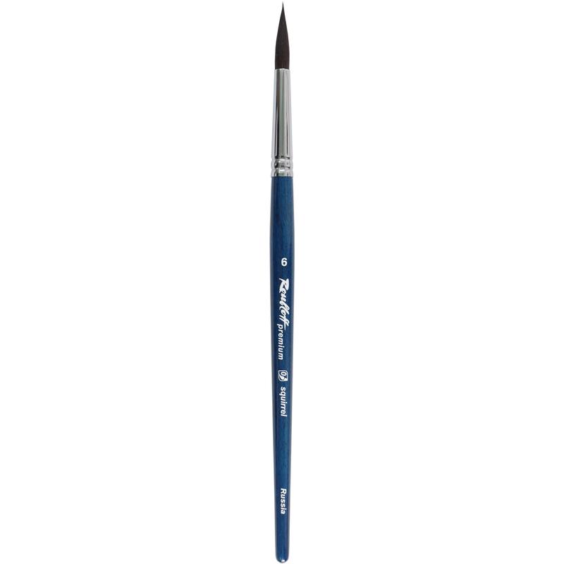 Кисть белка круглая Premium, удлиненная выставка, короткая синяя ручка, №6