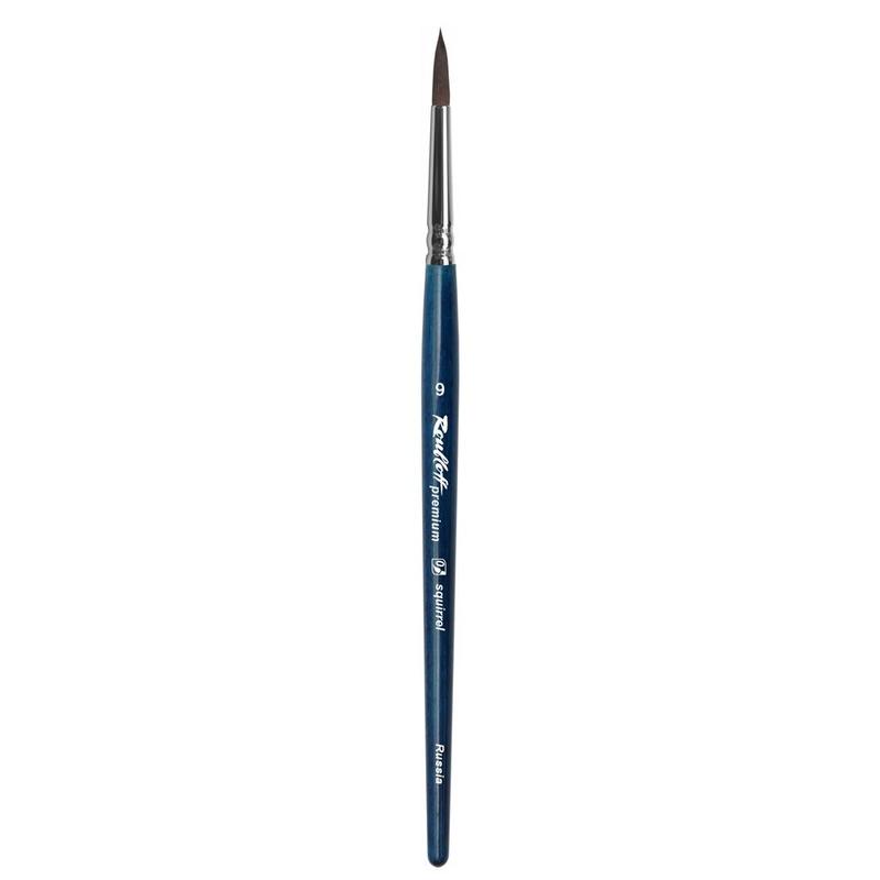 Кисть белка круглая Premium, удлиненная выставка, короткая синяя ручка, №9