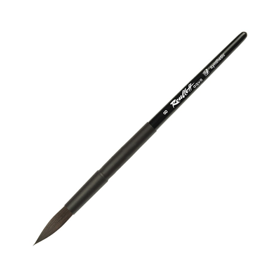 Кисть "Aqua Black round", имитация белки круглая, обойма soft-touch, ручка короткая черная №8