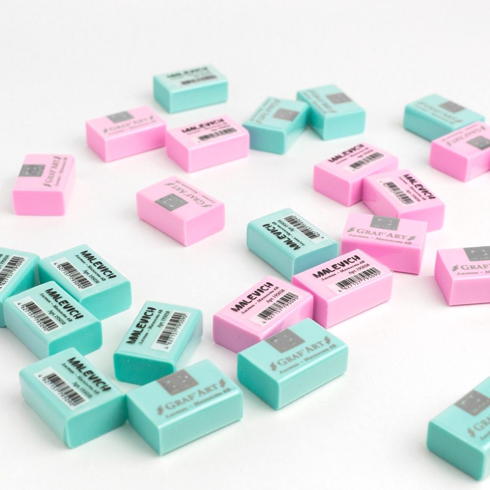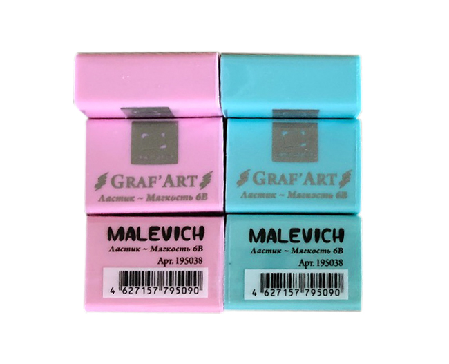 Ластик сделан из мягкого материала, который не оставляет мелких крошек, весь мусор собирается и легко удаляется с бумаги не повреждая её. Цвета в ассортименте.