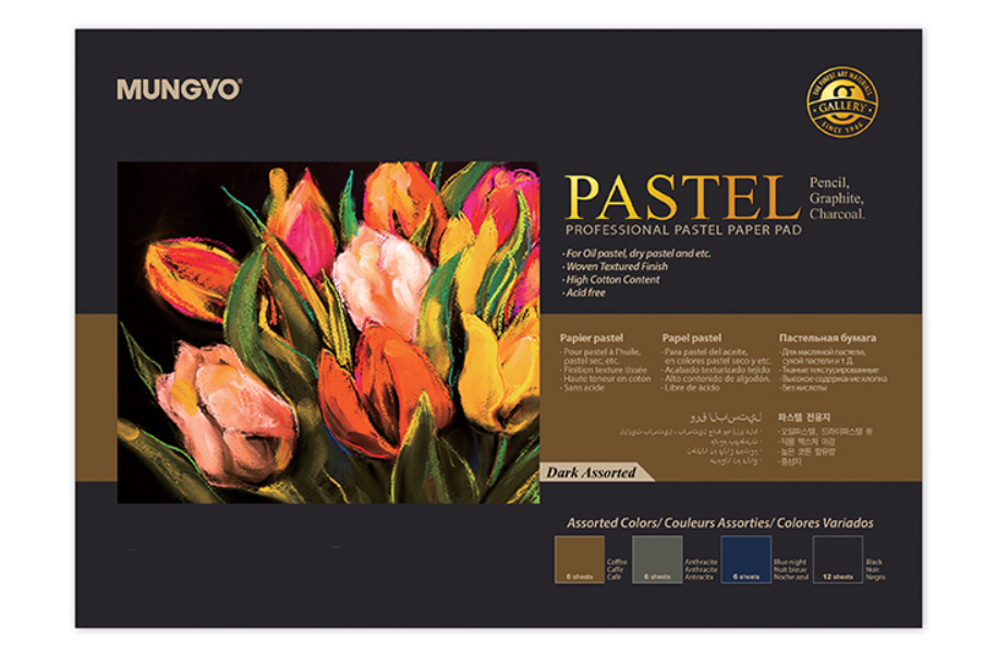 Профессиональная бумага для пастели от корейского бренда Mungyo. Обладает ярко выраженной текстурой, способной удерживать значительное количество пигмента, что делает эту бумагу великолепной основой для пастели, угля и меловых карандашей. В составе присутствует 25% хлопка и не содержит кислот.