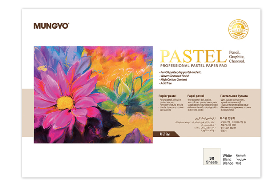 Профессиональная бумага для пастели от корейского бренда Mungyo. Обладает ярко выраженной текстурой, способной удерживать значительное количество пигмента, что делает эту бумагу великолепной основой для пастели, угля и меловых карандашей. В составе присутствует 25% хлопка и не содержит кислот.
