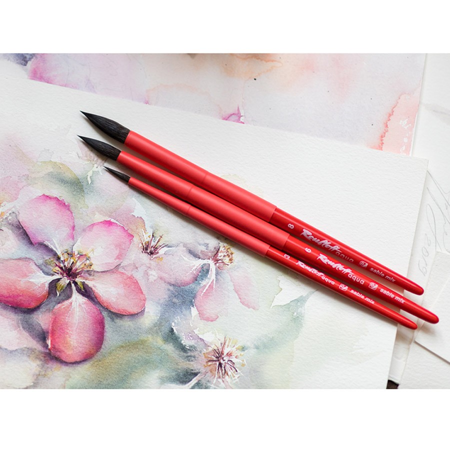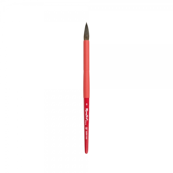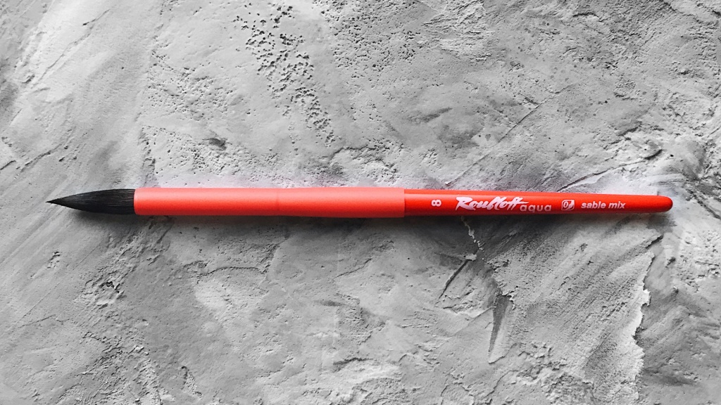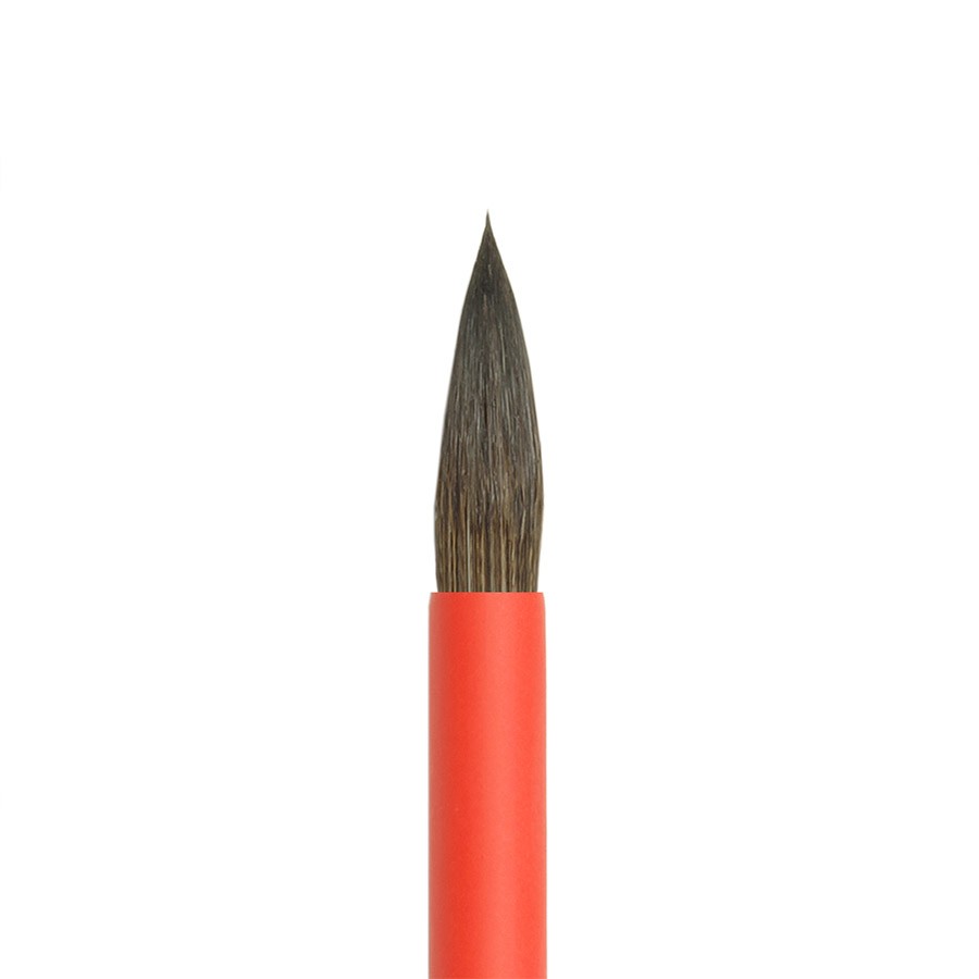 Кисть с удлиненной выставкой набирает много воды, справляется с объемными заливками и за счет острой вершинки позволяет выписывать самые сложные и тонкие формы, выверенное соотношение натурального послушного волоса черного соболя и синтетического ворса делают кисть чуть более упругой, чем ворс белки, а значит предсказуемой, с подконтрольным художнику соотношением воды и краски в кисти