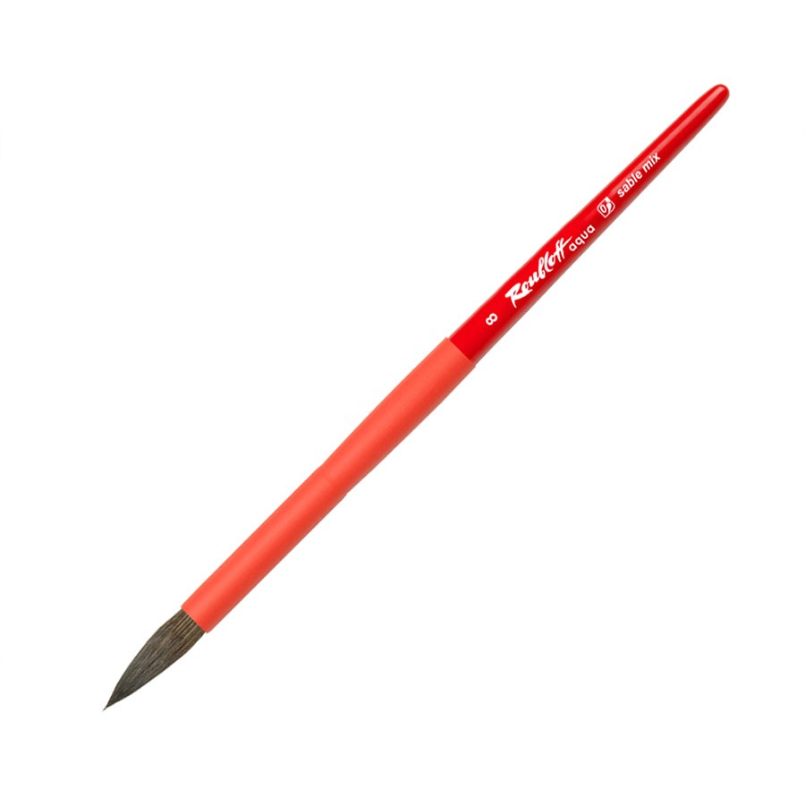 Кисть "Aqua Red round", соболь-микс круглая, обойма soft-touch, ручка короткая красная №8