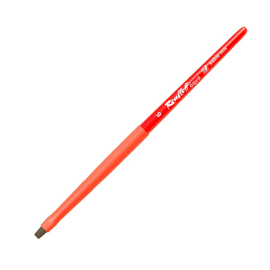 Кисть "Aqua Red flat", соболь-микс плоская, обойма soft-touch, ручка короткая красная №6