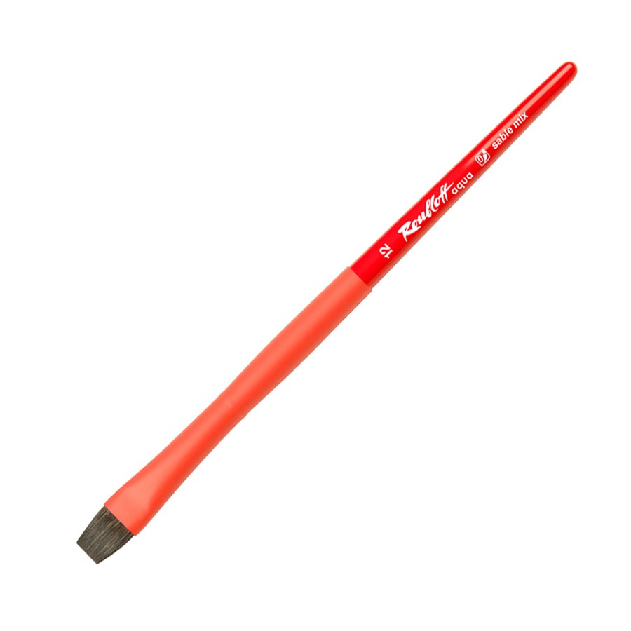 Кисть "Aqua Red flat", соболь-микс плоская, обойма soft-touch, ручка короткая красная №12