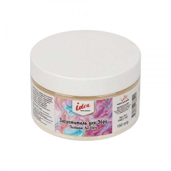 Загуститель изготовлен из натуральных морских водорослей и предназначен для работы в технике Эбру (техника рисования на поверхности воды с последующим переносом изображения на бумагу или другие поверхности). Приготовленный раствор сохраняет свои свойства в течение месяца при хранении в комнатной температуре.25 гр. порошка хватает для приготовления 6-7 литров раствора. Пропорции: 1 литр воды - ~4 гр. загустителя.Применение:1. Налить половину требуемого объема воды в емкость, удобную для перемешивания раствора2. Засыпать требуемое количество загустителя.3. Перемешивать миксером 2 - 3 минуты.4. Оставить раствор на 5 - 10 минут.5. Повторить шаги дважды для достижения лучшего результата.6. Когда хлопья загустителя полностью растворятся, залить в емкость остатки воды и перемешать миксером еще раз на протяжении нескольких секунд.7. Для достижения наилучшего результата рекомендуется оставить раствор на ночь при комнатной температуре.