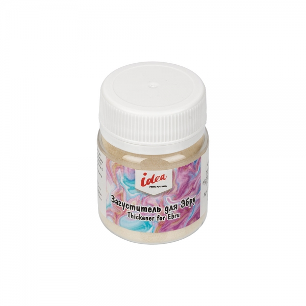 Загуститель изготовлен из натуральных морских водорослей и предназначен для работы в технике Эбру (техника рисования на поверхности воды с последующим переносом изображения на бумагу или другие поверхности). Приготовленный раствор сохраняет свои свойства в течение месяца при хранении в комнатной температуре.25 гр. порошка хватает для приготовления 6-7 литров раствора. Пропорции: 1 литр воды - ~4 гр. загустителя.Применение:1. Налить половину требуемого объема воды в емкость, удобную для перемешивания раствора2. Засыпать требуемое количество загустителя.3. Перемешивать миксером 2 - 3 минуты.4. Оставить раствор на 5 - 10 минут.5. Повторить шаги дважды для достижения лучшего результата.6. Когда хлопья загустителя полностью растворятся, залить в емкость остатки воды и перемешать миксером еще раз на протяжении нескольких секунд.7. Для достижения наилучшего результата рекомендуется оставить раствор на ночь при комнатной температуре.