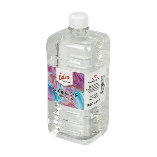 Раствор для работы в технике Эбру (техника рисования на поверхности воды с последующим переносом изображения на бумагу или другие поверхности). Vista-Artista уже готов к применению и не требует дополнительного разбавления. Имеет идеальную плотность для работы на бумаге, ткани, дереве, керамике и других впитывающих поверхностях. Одного литра раствора хватает в среднем на 60-70 рисунков формата А4.
