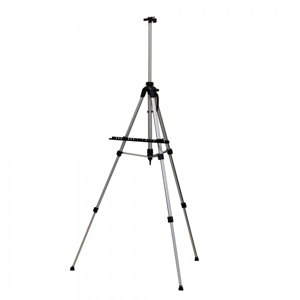 Мольберт-тренога - это профессиональный портативный, складной, металлический мольберт. Он предназначен для использования на пленэре или для демонстративных целей. В сложенном виде занимает минимум места, а входящая в состав переносная сумка-чехол позволяет без проблем транспортировать его до нужного места. В разложенном виде мольберт является классической треногой со штативом и подвижной мачтой. Телескопические ножки позволяют устанавливать мольберт на неровной поверхности и изменять высоту для работы с ним стоя или сидя.В комплект мольберта входит полка для установки холста. Мольберт оснащен ручной для удобства переноски и пузырьковым уровнем для горизонтальных поверхностей.
