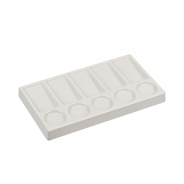Палитра для предназначена для смешивания красок и получения новых тонов. Прекрасно подходит для работы с акварелью и другими жидкими красками. Особый пластик имитирует керамическую поверхность, при этом прочный и нехрупкий.