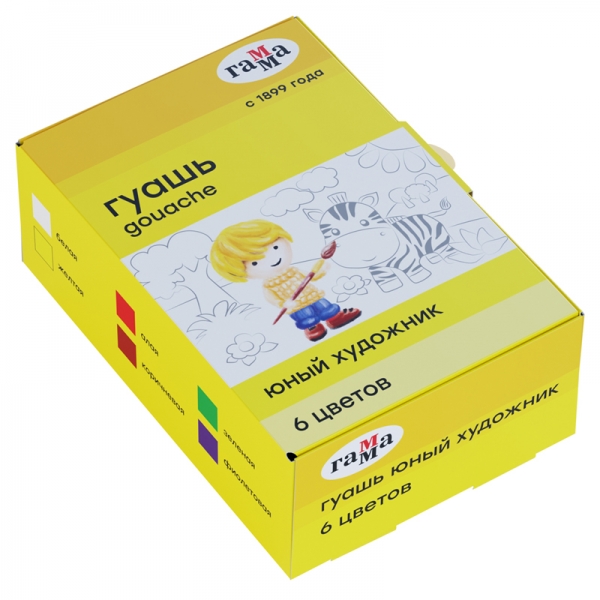 Гуашь ГАММА "Юный художник" производится на основе качественного, прозрачного связующего вещества, поэтому цвета яркие, чистые и насыщенные. Гуашь рисует на любой поверхности, ложится плотным слоем благодаря высокой укрывистости и не деформирует бумагу при высыхании. Набор: 6 цветов в баночках. Объем баночки - 17,5 мл.