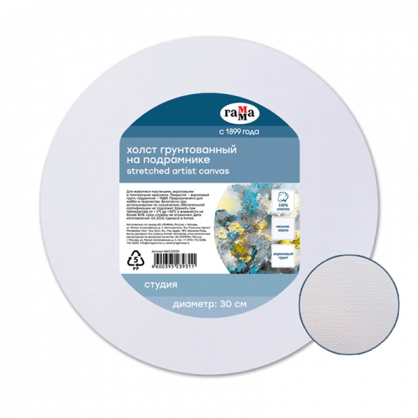 Холст на подрамнике "Студия", круглый, диаметр 30 см, 100% хлопок, мелкое зерно