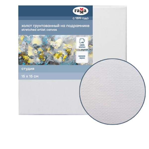 Хлопковый холст на подрамнике предназначен для живописи масляными, акриловыми и темперными красками. Основа - натуральное полотно 100% хлопок. Это современный материал для живописи. Подойдет для студентов художественных школ и училищ, начинающих и профессиональных художников. Размер 15*15 см, квадратный формат, сосновый подрамник.