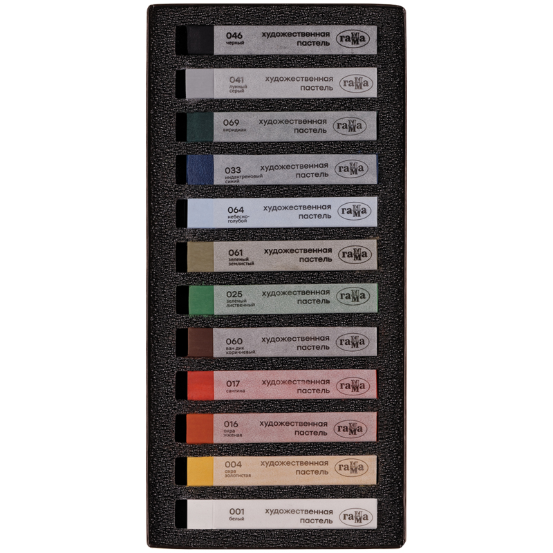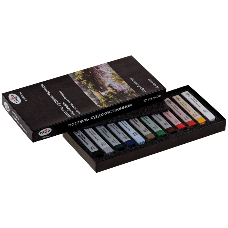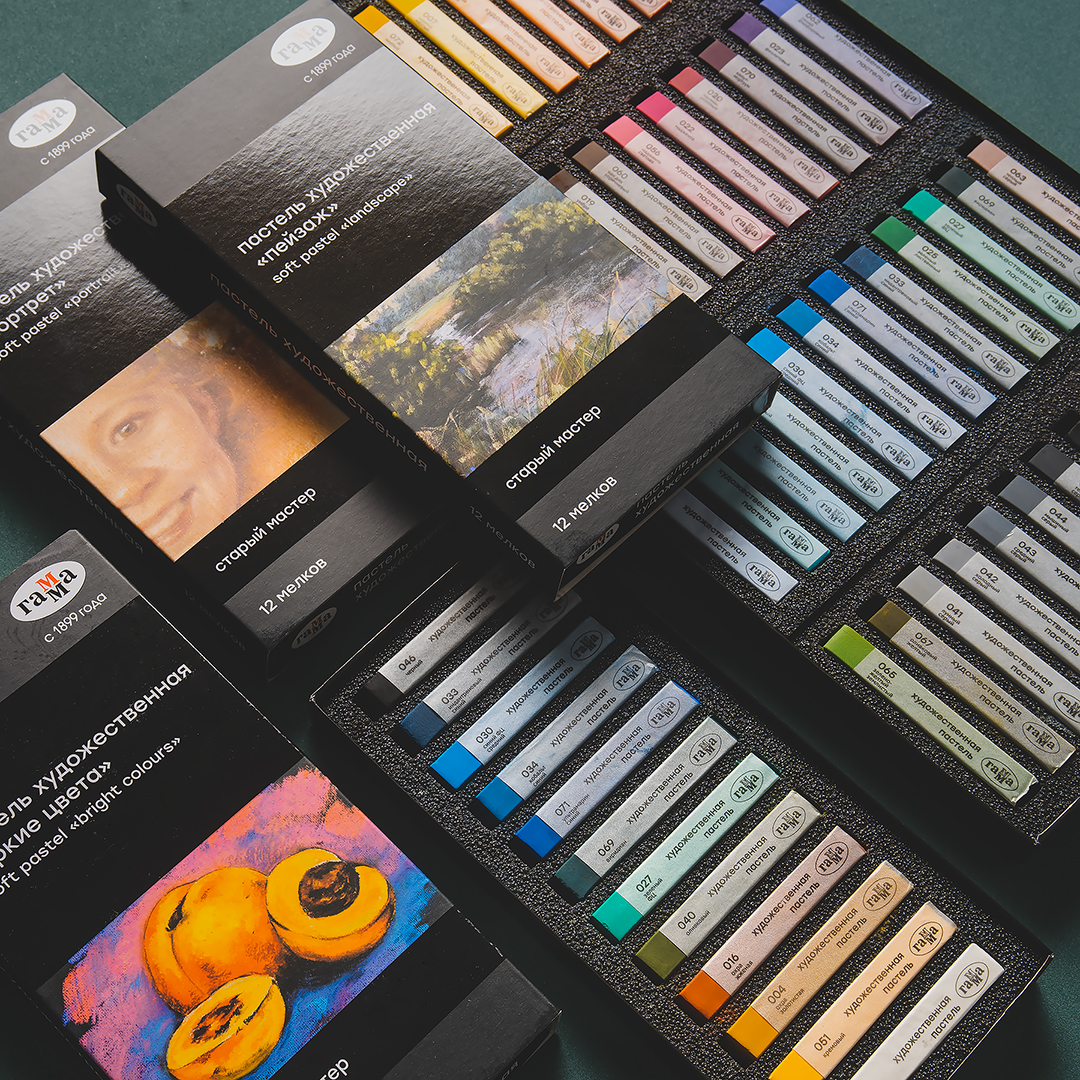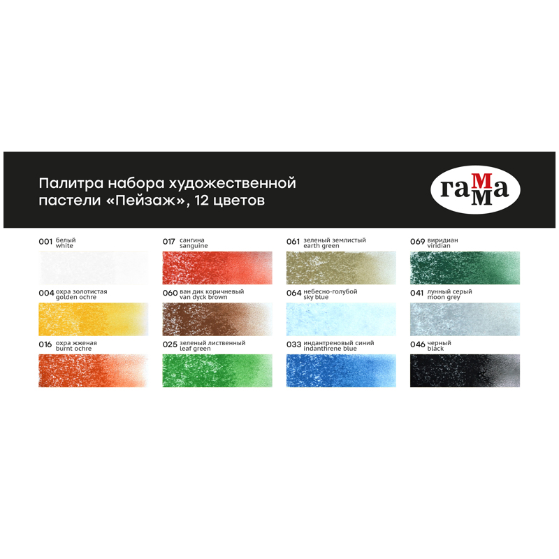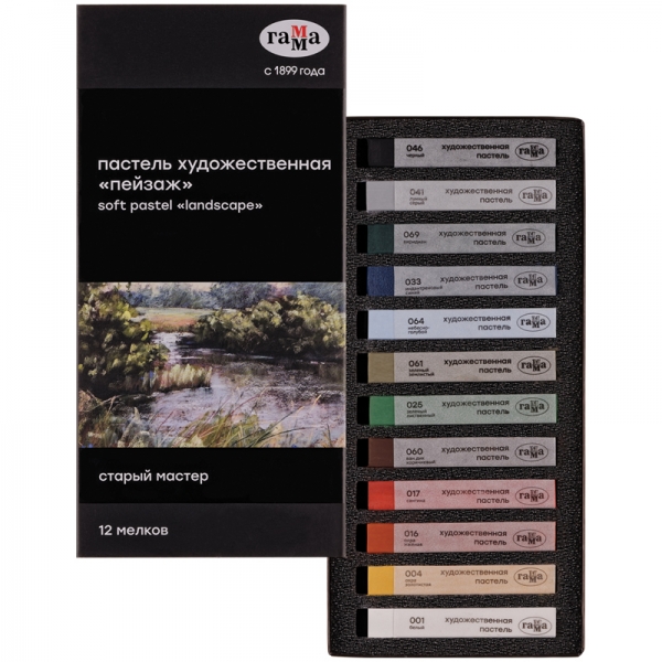 Набор сухой художественной пастели средней мягкости. В наборе мелки квадратной формы в индивидуальной бумажной гильзе с указанием цвета. Пастель легко наносится, смешивается и растушевывается. Цвета в наборе подобраны для создания пейзажей: большой выбор зеленых и земляных оттенков.