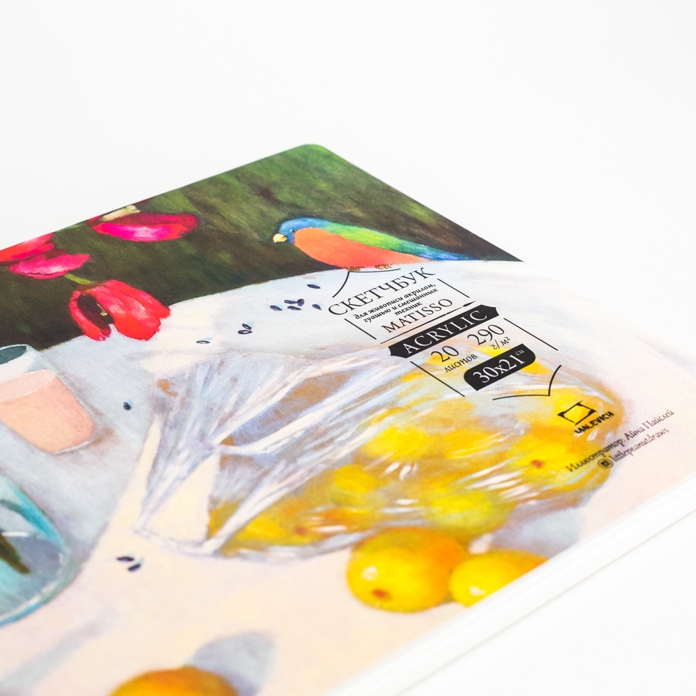 Скетчбуки с слегка шероховатой бумагой плотностью 290 г/м, которая отлично подходит для рисования акрилом, гуашью и для смешанных техник.