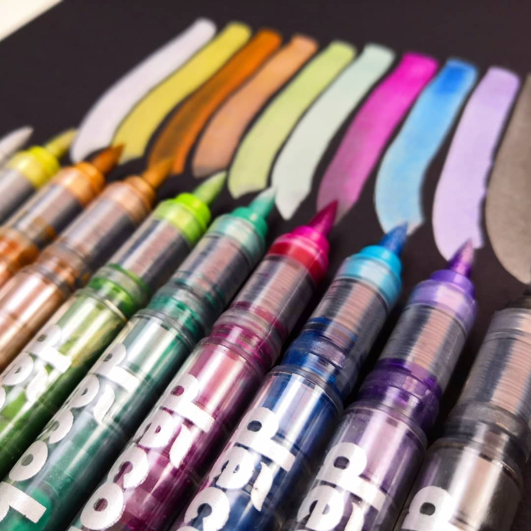 Маркеры снабжены японским сверхпрочным и гибким нейлоновым наконечником. Он исключительно долговечен и легко реагирует на изменение давления и направление движения. Равномерно наносит чернила при разной силе нажиме, обеспечивая равномерный цвет рисунка. Это делает маркеры идеальными.для рисования, каллиграфии и леттеринга. Водорастворимы - можно рисовать в технике акварели. Технология «Жидкие чернила» позволяет использовать краску на.100%, не менять интенсивность цвета и контролировать.поступление краски к кисти. Это делает Karin в два раза эффективнее традиционных фильтр-маркеров. Корпус оптимального веса и размера удобно лежит в руке, облегчая создание ровных штрихов без прерывания и пятен. Доступны в 60 цветах..Чернила отлично смешиваются,.создавая новые оттенки и тональные переходы. Визуальный контроль уровня чернил. Практичный клип. Хранить вертикально, наконечником вверх, с плотно закрытым колпачком.