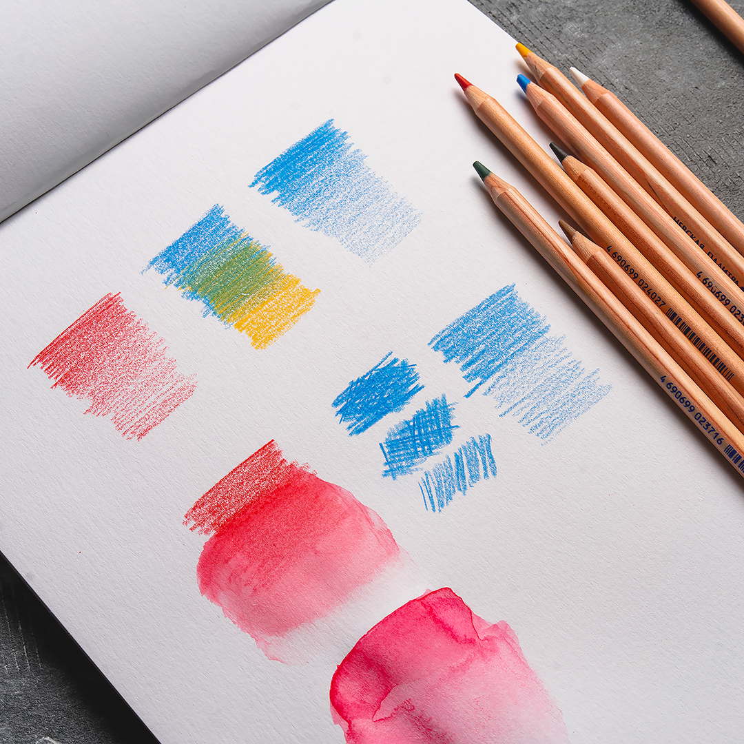 Акварельные карандаши «Белые ночи» совмещают в себе свойства цветных карандашей и акварельных красок. Грифель толщиной 3,7 мм изготовлен из высококачественных пигментов и при соприкосновении с водой дает возможность получить превосходный эффект акварели. Для достижения этого эффекта можно работать и «по-мокрому», и размывать необходимые участки рисунка кистью. Для работы с акварельными карандашами лучше всего использовать акварельную бумагу.