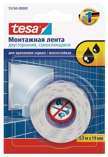 Двусторонняя лента монтажная TESA 55760 для зеркал — это.самоклеящаяся лента со сверхсильной.адгезией, применяется во влажных помещениях, таких как, ванная комната. Лента используется для крепления полок, зеркал и еще множества различных предметов. Ведь она способна удерживать предметы размером 70 х 70 см, толщиной до 4 мм. С лентой TESA 55760 Вы можете забыть о гвоздях и шурупах, оставляющих дыры в кафеле и придающих полкам и зеркалам неаккуратный вид.