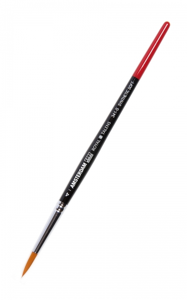 Кисти Amsterdam от Royal Talens (Нидерланды) предназначены для акриловых, масляных и гуашевых красок. Удобная и долговечная деревянная ручка. Материал ворса кистей: мягкая рыжая синтетика. Такой ворс прекрасно держит форму, не ломается, хорошо набирает краску и легко моется под струёй воды. При соприкосновении с бумагой волоски не разъединяются и ведут чёткую линию, без «полос». Кисть из рыжей синтетики мягкая, тонкая и эластичная, мазки получаются сочными и яркими. При намокании такая кисть хорошо держит форму, что подходит для кропотливой контурной работы