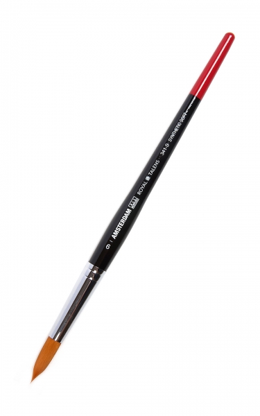 Кисти Amsterdam от Royal Talens (Нидерланды) предназначены для акриловых, масляных и гуашевых красок. Удобная и долговечная деревянная ручка. Материал ворса кистей: мягкая рыжая синтетика. Такой ворс прекрасно держит форму, не ломается, хорошо набирает краску и легко моется под струёй воды. При соприкосновении с бумагой волоски не разъединяются и ведут чёткую линию, без «полос». Кисть из рыжей синтетики мягкая, тонкая и эластичная, мазки получаются сочными и яркими. При намокании такая кисть хорошо держит форму, что подходит для кропотливой контурной работы