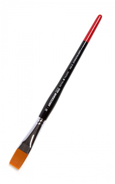 Кисти Amsterdam от Royal Talens (Нидерланды) предназначены для акриловых, масляных и гуашевых красок. Удобная и долговечная деревянная ручка. Материал ворса кистей: мягкая рыжая синтетика. Такой ворс прекрасно держит форму, не ломается, хорошо набирает краску и легко моется под струёй воды. При соприкосновении с бумагой волоски не разъединяются и ведут чёткую линию, без «полос». Кисть из рыжей синтетики мягкая, тонкая и эластичная, мазки получаются сочными и яркими. При намокании такая кисть хорошо держит форму, что подходит для кропотливой контурной работы
