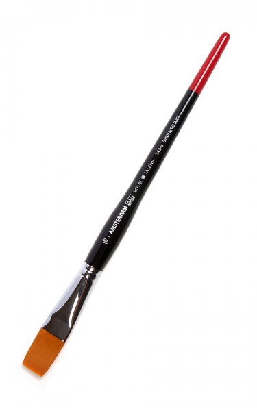 Кисти Amsterdam от Royal Talens (Нидерланды) предназначены для акриловых, масляных и гуашевых красок. Удобная и долговечная деревянная ручка. Материал ворса кистей: мягкая рыжая синтетика. Такой ворс прекрасно держит форму, не ломается, хорошо набирает краску и легко моется под струёй воды. При соприкосновении с бумагой волоски не разъединяются и ведут чёткую линию, без «полос». Кисть из рыжей синтетики мягкая, тонкая и эластичная, мазки получаются сочными и яркими. При намокании такая кисть хорошо держит форму, что подходит для кропотливой контурной работы
