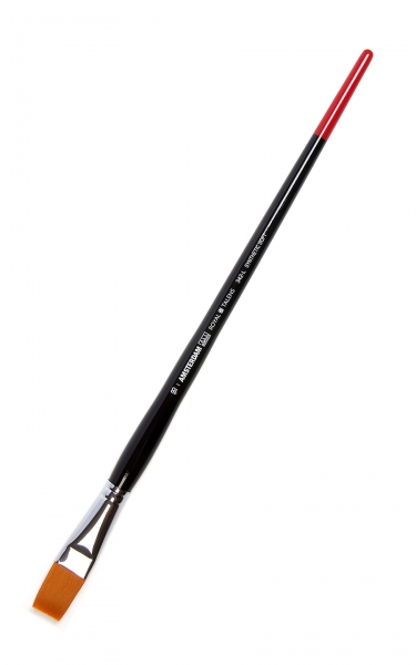 Кисти Amsterdam от Royal Talens (Нидерланды) предназначены для акриловых, масляных и гуашевых красок. Удобная и долговечная деревянная ручка. Материал ворса кистей: мягкая рыжая синтетика. Такой ворс прекрасно держит форму, не ломается, хорошо набирает краску и легко моется под струёй воды. При соприкосновении с бумагой волоски не разъединяются и ведут чёткую линию, без «полос». Кисть из рыжей синтетики мягкая, тонкая и эластичная, мазки получаются сочными и яркими. При намокании такая кисть хорошо держит форму, что подходит для кропотливой контурной работы
