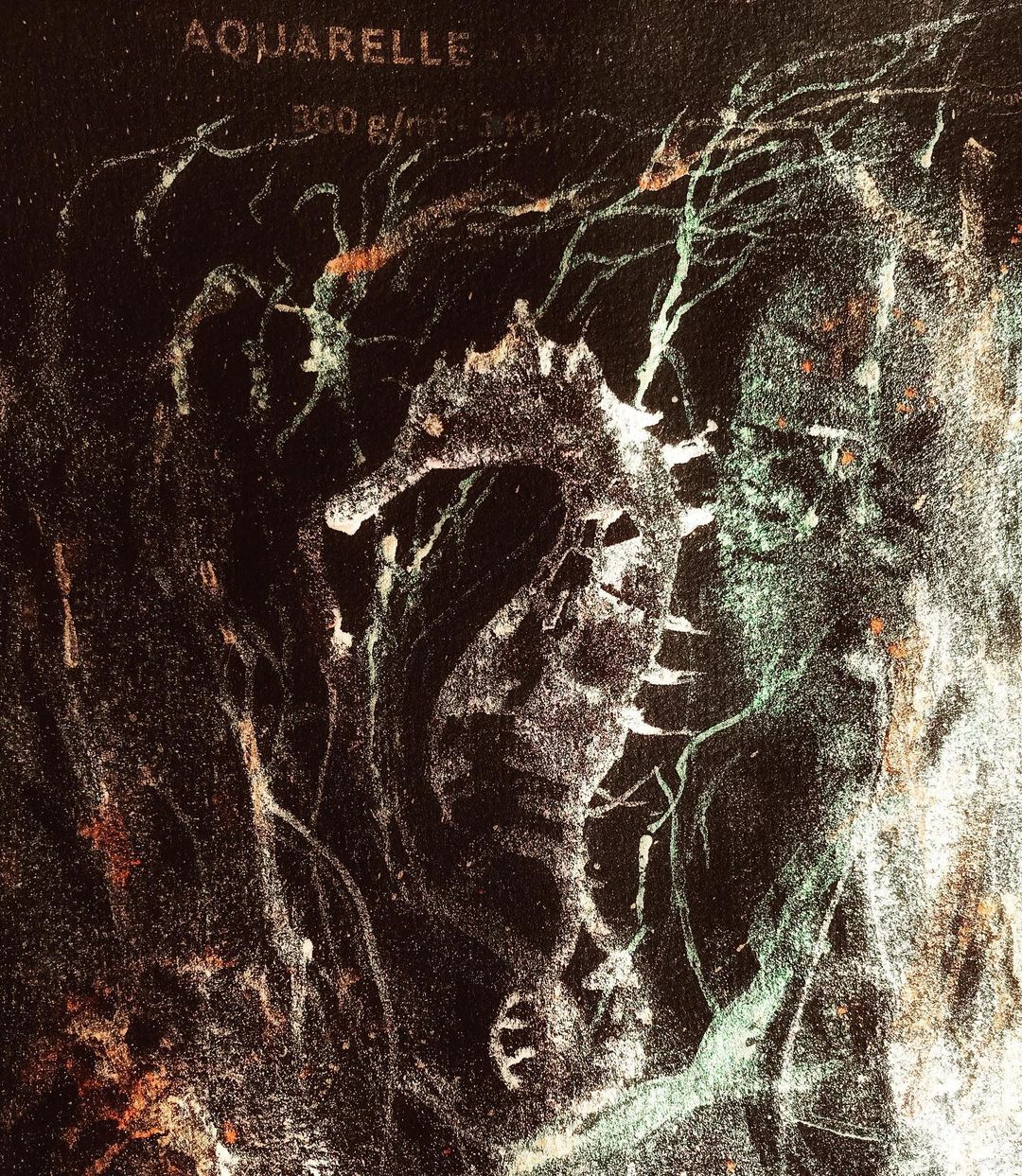 Etival среднезернистой фактуры в работе напоминает бумагу Vision от Stratmore.