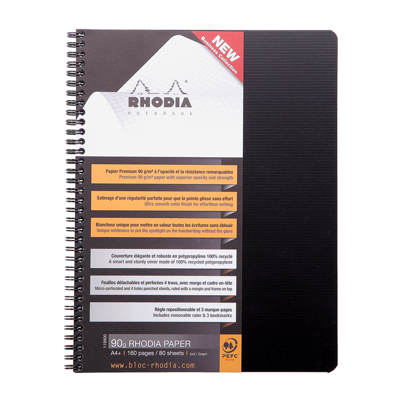 Бизнес-тетрадь 80л., A4+, клетка на гребне Rhodia "Active", 90г/м2, пластик.обложка, линейка, заклад