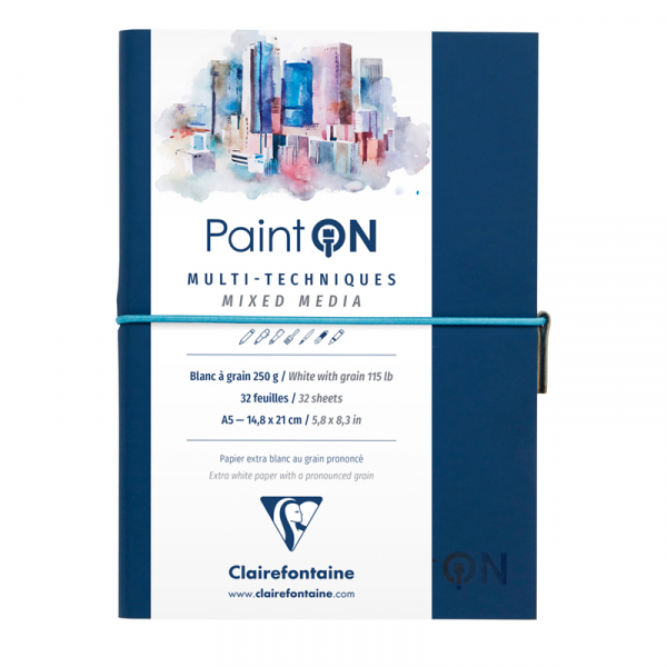 Скетчбук для смешанных техник "Paint'ON" – продукт для начинающих художников, городских скетчеров и дизайнеров. Цвет обложки скетчбука идентифицирует бумагу внутреннего блока. А5 формат позволяет взять скетчбук с собой и делать зарисовки на улице, в путешествии. Обложка – мягкая из кожзама, фиксируется резинкой. Тип скрепления – сшивка. Внутренний блок – белая бумага с двумя типами поверхности, 32 листа. Плотность – 250 г/м2.