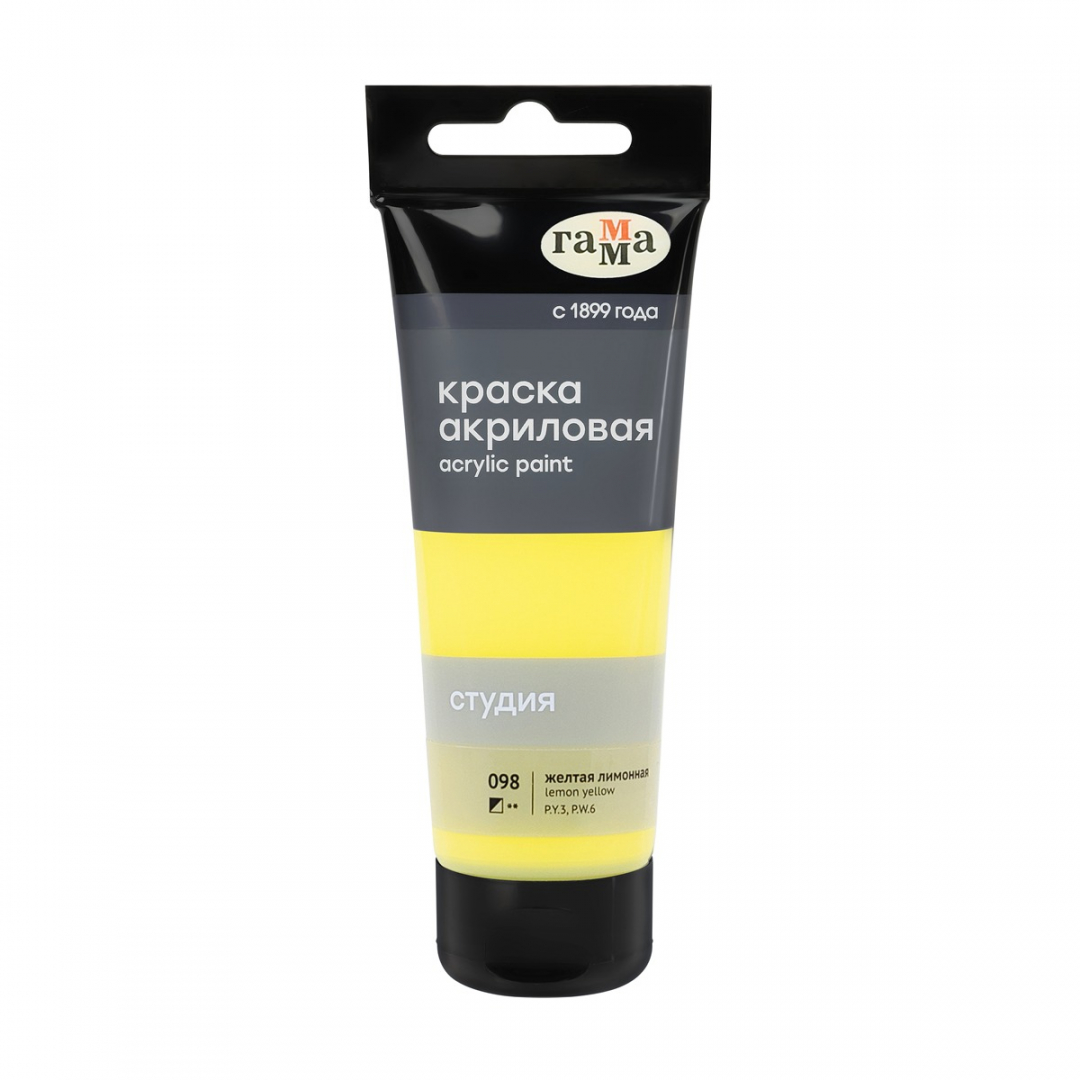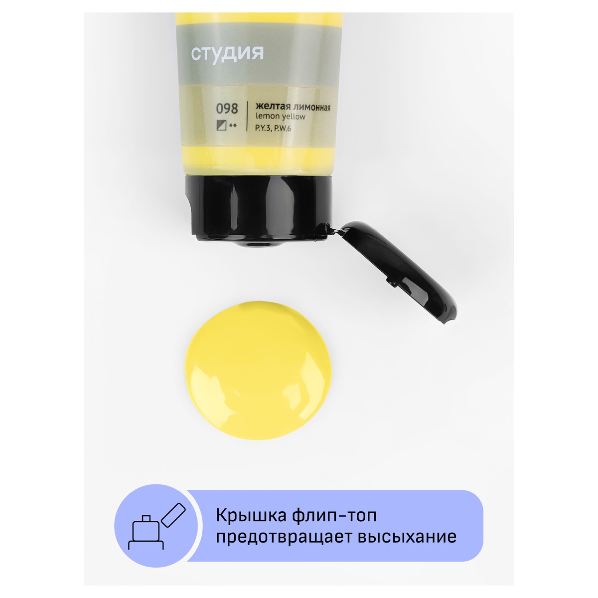 Краска акриловая художественная "Студия", 75мл, желтая лимонная