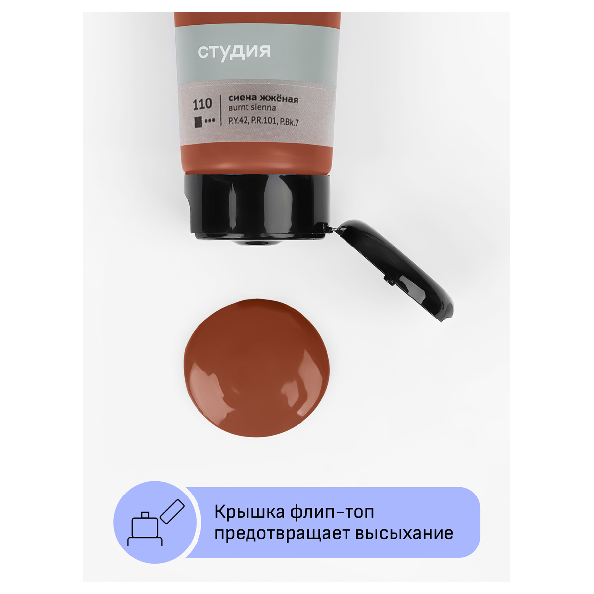 Краска акриловая художественная "Студия", 75мл, сиена жжёная