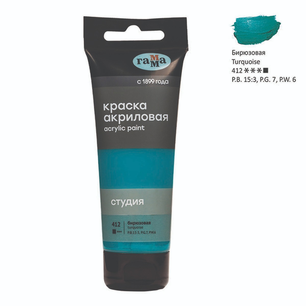 Краска акриловая художественная "Студия", 75мл, бирюзовая